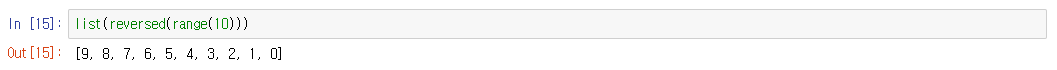 (reversed를 쓸 때 가장 많이 하는 실수는 이것이 제너레이터라는 점을 잊어버리고 그냥 사용한다는 점이다. 꼭 list()나 for문으로 모든 값은 다 받아오기 전에는 순차 자료형을 생성하지 않는다는 점을 명심해야 한다.)