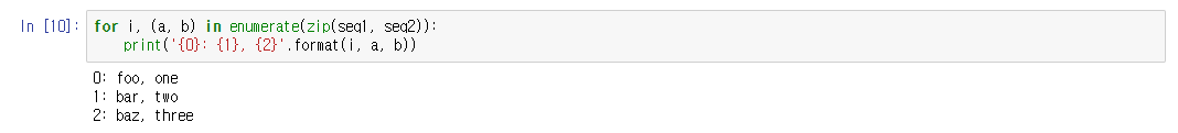 zip함수는 enumerate와 함께 사용되기도 한다.