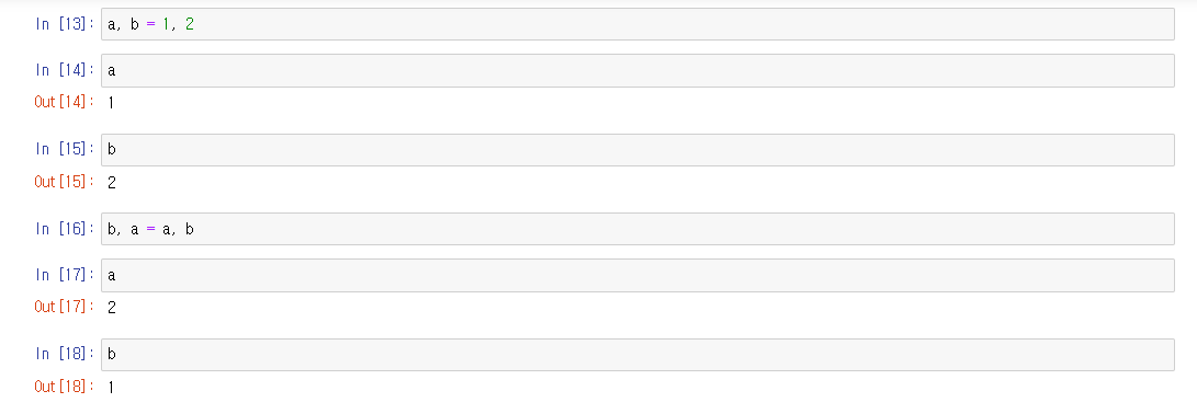 2-3 파이썬에서 변수를 바꾸기 위해선 다음과 같은 방법도 가능