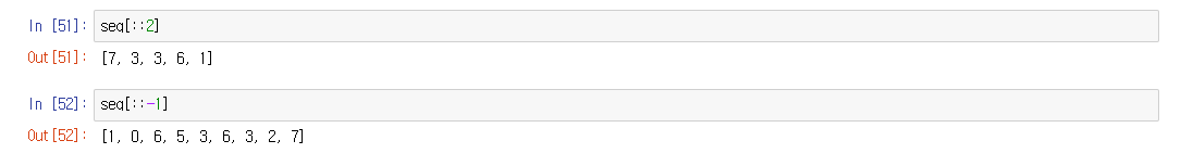 seq[-6:-2] -> 뒤에서 6번째 값부터 뒤에서 2번째 값까지 추출