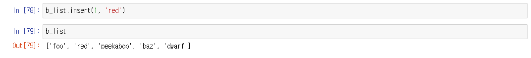 2-2 insert를 사용해 리스트 내 특정 위치 값을 추가(0이 첫번째, 1이 두번째이므로 두번째에 'red'가 추가됨)