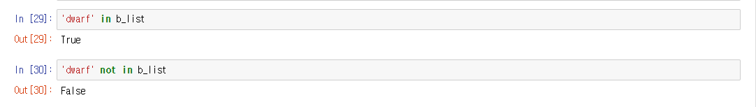 2-5 리스트 내 요소 검사(리스트 내 값이 있으면 True, 없으면 False가 출력된다)
