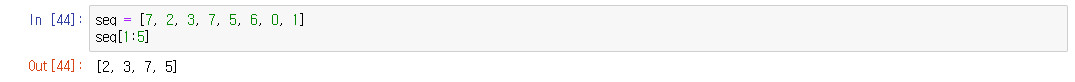 seq[:5] ->1째부터 5번째 값까지 리스트 추출