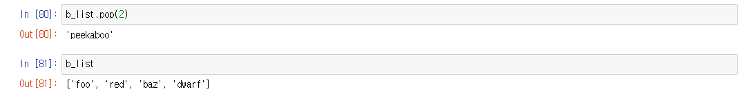 (0,1,2 -> 2는 세번째 요소를 의미하고 b_list에서 3번째 요소인 peekaboo가 반환됨과 동시에 사라졌다)
